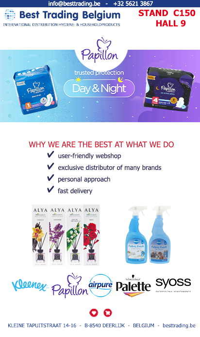 Best Trading is a Belgian company specialized in drugstore products. In addition to a number of exclusive regular distributions Best Trading always has a nice offer branded products at very good prices. Best Trading is distinguished by the close cooperation with customers and suppliers whom it regards as its partners and for whom it pursues a flawless service.