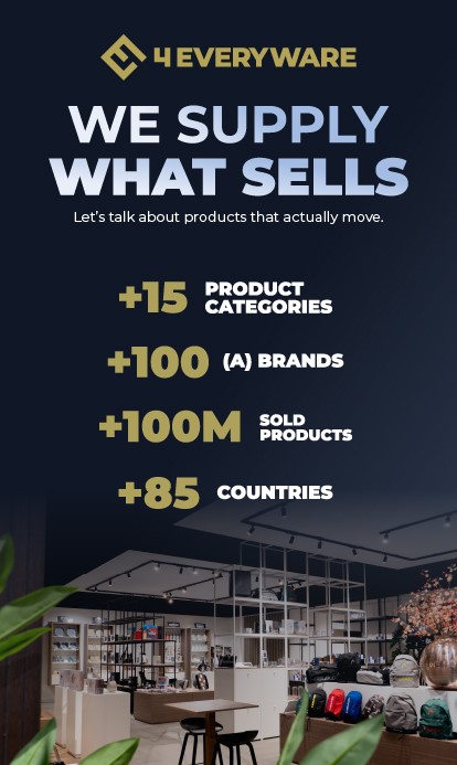 4Everyware BV is a wholesaler specialized in buying and selling A-brands non-food products from and to multinational organizations, wholesalers and distributors.